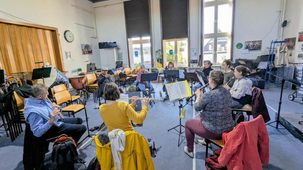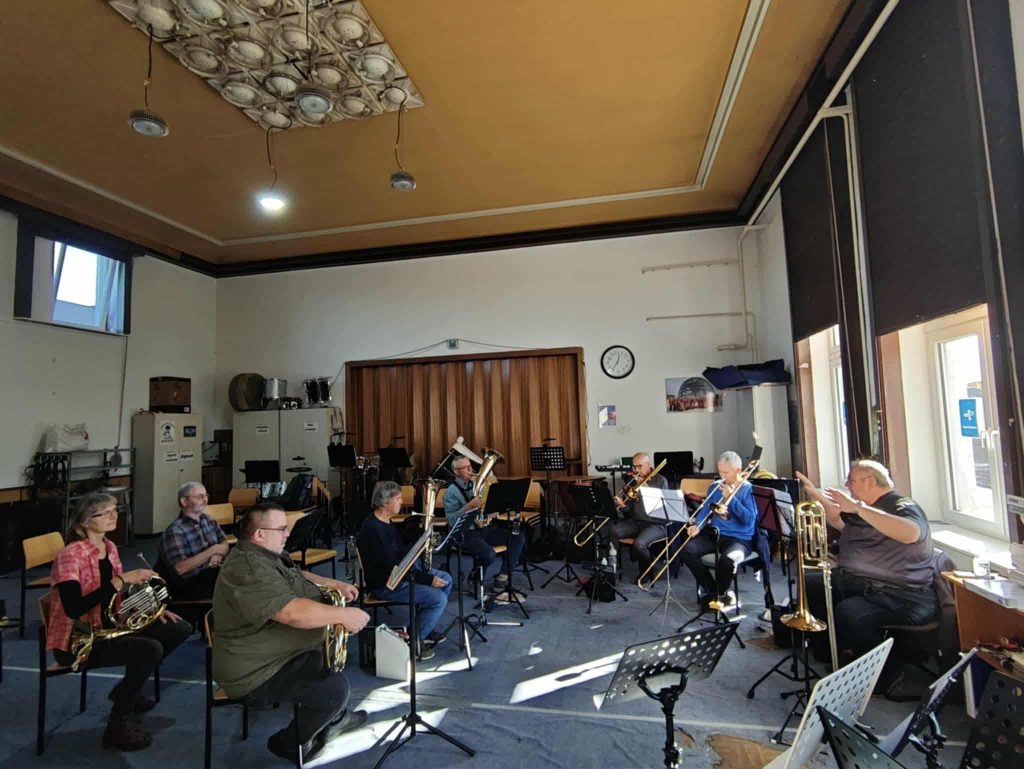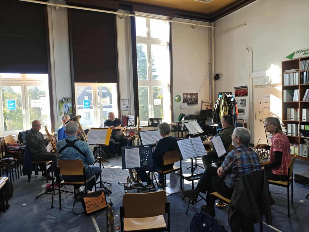 Nachdem der Herbst nun endgültig Einzug gehalten hat, geht auch unsere Auftrittssaison zu Ende. Das ist jedoch kein Grund für eine musikalische Pause. Wir nutzen die nun anstehende Jahreszeit insbesondere zur Vorbereitung auf unser nächstes Jahreskonzert am 13. Dezember 2025 um 16:00 Uhr in der Christuskirche in Oberschöneweide und auf das gemeinsame Konzert mit dem Männergesangverein Bestensee 1923 e.V. am 14. Dezember 2025 in Bestensee. Der heutige Vormittag wurde daher für Registerproben der Holz- und Blechbläser genutzt, wobei auch ein Trompeter als gern gesehener Gast die Registerprobe der Holzbläser mit seinen zarten Klängen bereicherte. Innerhalb der Registerproben haben wir schwierige Stellen im gemäßigten Übungstempo aufgearbeitet, schöne Klänge entwickelt und musikalische Feinheiten insbesondere im Bereich der Dynamik in die Stücke eingearbeitet. Unser Dirigent würde dazu wohl sagen, dass wir angefangen haben Musik zu machen 😉. Unser Dank geht an dieser Stelle an die Leiter der Registerproben, die für eine angenehme Übungsatmosphäre gesorgt haben.