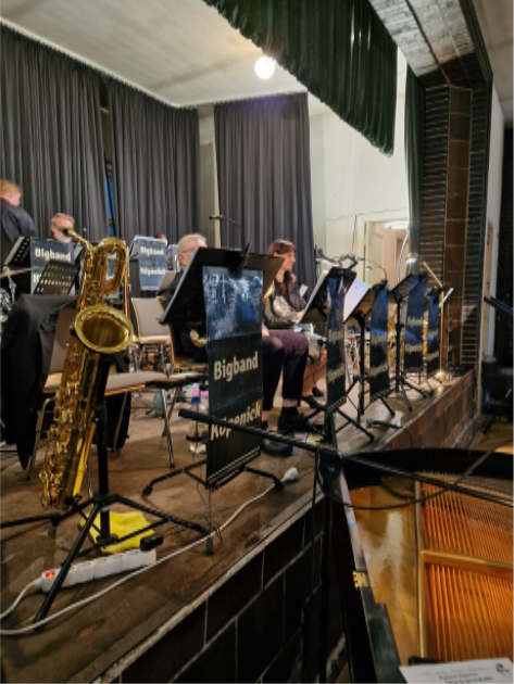 Endlich war es soweit. Nach monatelanger Vorbereitung der Setlist wurde es Zeit, endlich mal wieder vor Publikum zu spielen. Am späten Nachmittag trafen sich die Musikerinnen und Musiker der Bigband, um den Raum und die Bühne fertig zu gestalten, die Instrumente spielbereit zu machen und schließlich, in der kurzen Anspielprobe, den letzten Feinschliff an der einen oder anderen Stelle anzubringen.