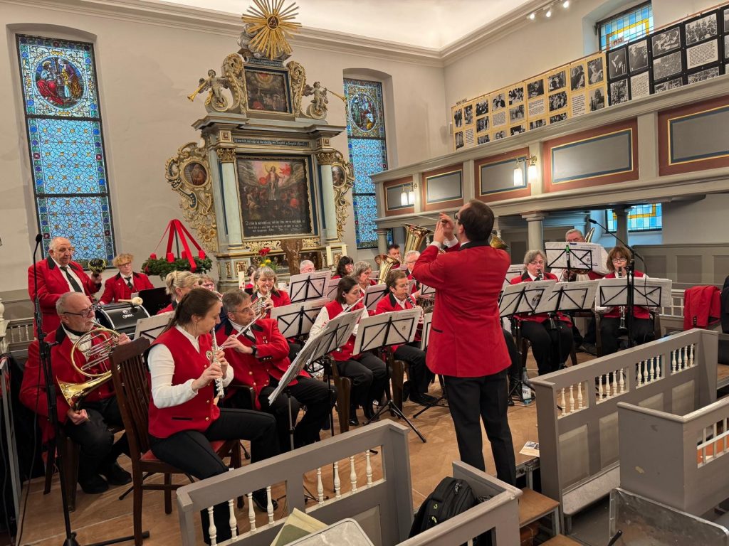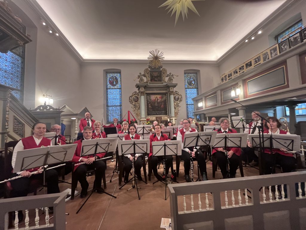 Für unser Blasorchester war der Auftritt in der alten Dorfkirche Kaulsdorf der erste in der Weihnachtszeit seit langer Zeit. Entsprechend groß war unsere Vorfreude, die durch die gemütliche Atmosphäre der charmanten Dorfkirche und die besinnliche Umgebung des Weihnachtsmarktes noch verstärkt wurde. Nach einer herzlichen Begrüßung durften wir eine Stunde lang unseren Beitrag zum Bühnenprogramm des nur an diesem Tag stattfindenden Weihnachtsmarktes leisten. Dabei verzichteten wir auf typische Weihnachtsmusik und spielten stattdessen Stücke, welche uns in diesem Jahr begleitet haben und teilweise an die Weihnachtszeit erinnerten. Das zahlreich erschienene Publikum war sehr aufgeschlossen gegenüber dieser Art weihnachtlicher Unterhaltungsmusik und dankte uns mit freudestrahlenden Gesichtern und Mitklatschen. Besonders Klassiker wie der bekannte Titel “I Will Follow Him” aus dem Film “Sister Act”, der Popsong “Downtown” oder Neil Diamonds “Sweet Caroline” wurden vom Publikum beklatscht und bejubelt. Aber auch klassische Blasmusik wie der “Fliegermarsch” wurde mit viel Applaus belohnt. Ein solch toller Einstieg in die weihnachtliche Auftrittswelt übertraf unsere Erwartungen. Vielen Dank für die herzliche Aufnahme unseres Blasorchesters in Kaulsdorf!