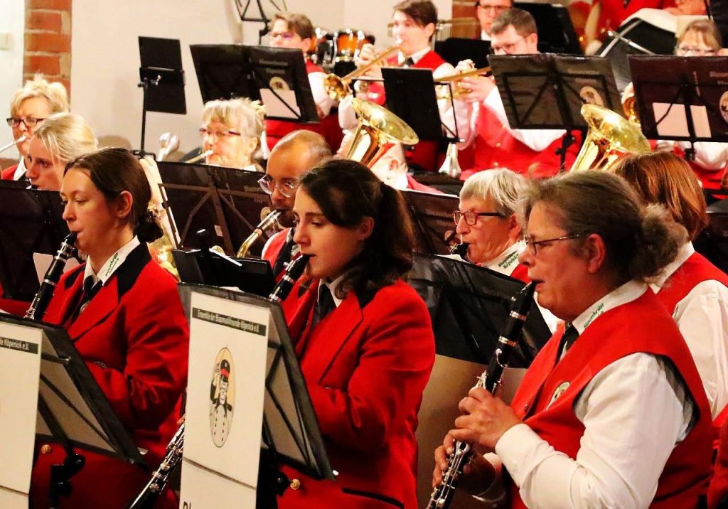 Vor der Verabschiedung in unsere Auftritts-Sommerpause war unser Blasorchester zum wiederholten Male beim Heimatfest in Marienwerder zu Gast. Die herzliche Begrüßung durch den Ortsvorsteher Dirk Büttner und der ehrenamtlichen Bürgermeisterin Annett Klingsporn rief bei den Orchestermitgliedern heimische Gefühle hervor. Der Auftritt beim Heimatfest in Marienwerder ist für das Orchester mit schönen Erinnerungen verbunden und so freuten sich die Musiker*innen bereits im Voraus das Fest musikalisch mitgestalten zu dürfen. Diesmal wurden wir auch von einigen neuen Musiker*innen unterstützt und sogar unsere schwangere Kathi nutzte drei Wochen vor Geburtstermin den Auftritt als eine eigene Art der Geburtsvorbereitung. Musikalische Unterstützung erhielt das Orchester auch durch einen lokalen Engel, der ein Stück auf der Mundharmonika zum Besten gab. Neben klassischen Blasmusikmelodien war das Publikum auch von modernen Unterhaltungsstücken wie dem Udo Jürgens Medley oder Sweet Caroline begeistert und so sorgte die Unterstützung durch das Publikum für eine heitere Atmosphäre. Natürlich spielten wir auch gerne die gewünschte Titelmelodie der DDR-Serie Zur See, die schon vorab sehnlichst erwartet wurde. Die Zeit ging schnell vorbei und gerne hätten wir das Fest weiter musikalisch begleitet. Es wird aber sicherlich ein Widersehen geben, auf das wir uns bereits jetzt freuen.