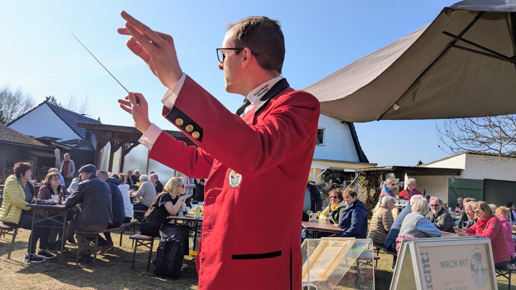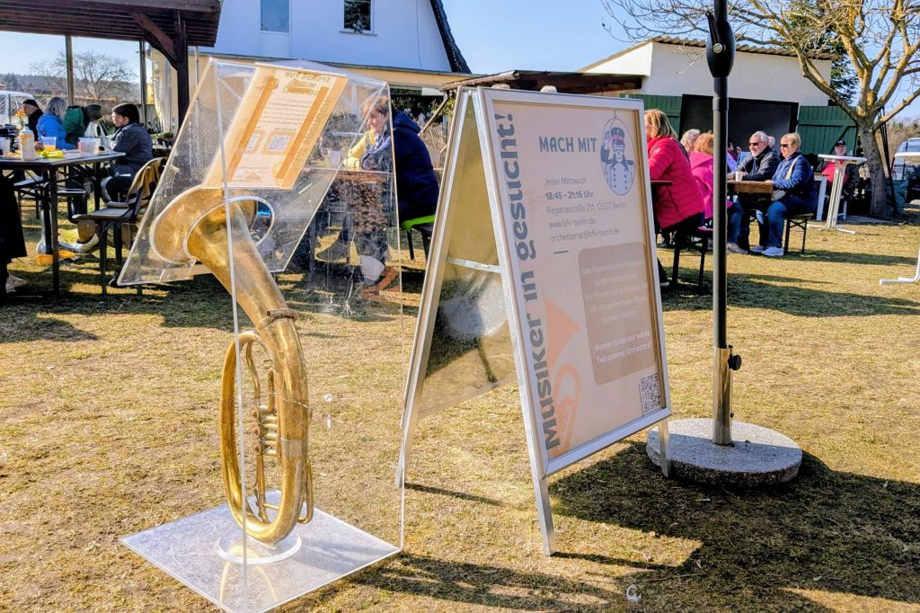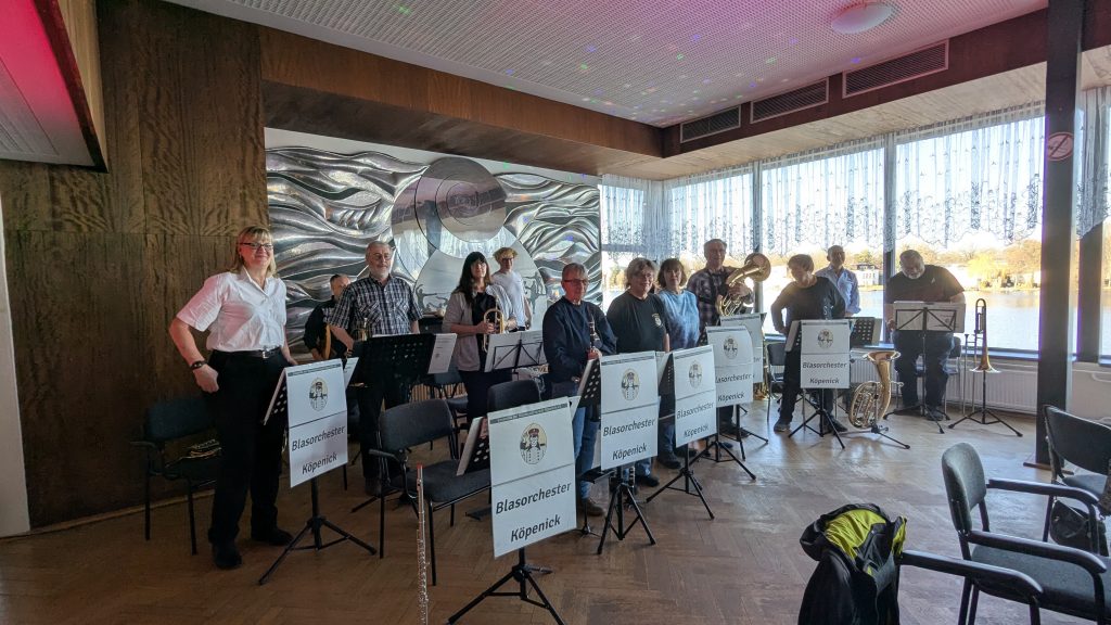 Gleich zu Beginn der Auftrittssaison war unser Blasorchester zu Auftritten bei Freunden eingeladen. Zunächst spielte eine kleine Besetzung des Orchesters bei einer internen Veranstaltung des Sportamts Treptow-Köpenick. Unsere kurze musikalische Einlage wurde von den Teilnehmenden der Veranstaltung mit tosendem Applaus belohnt. Das Orchester freute sich, einen Beitrag für die Nachbar*innen leisten zu dürfen und freut sich auf weitere Kooperationen!